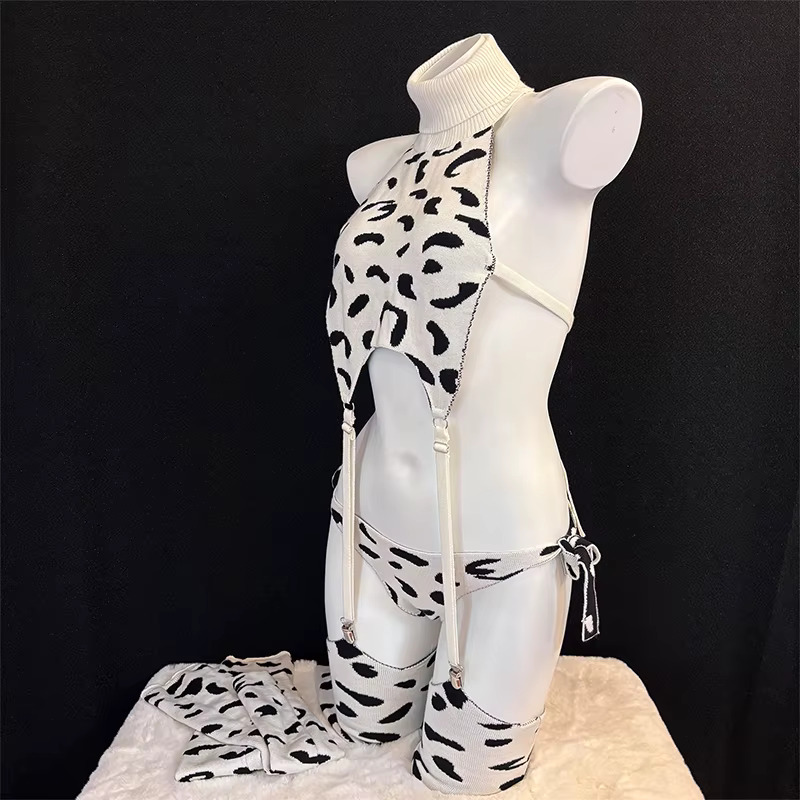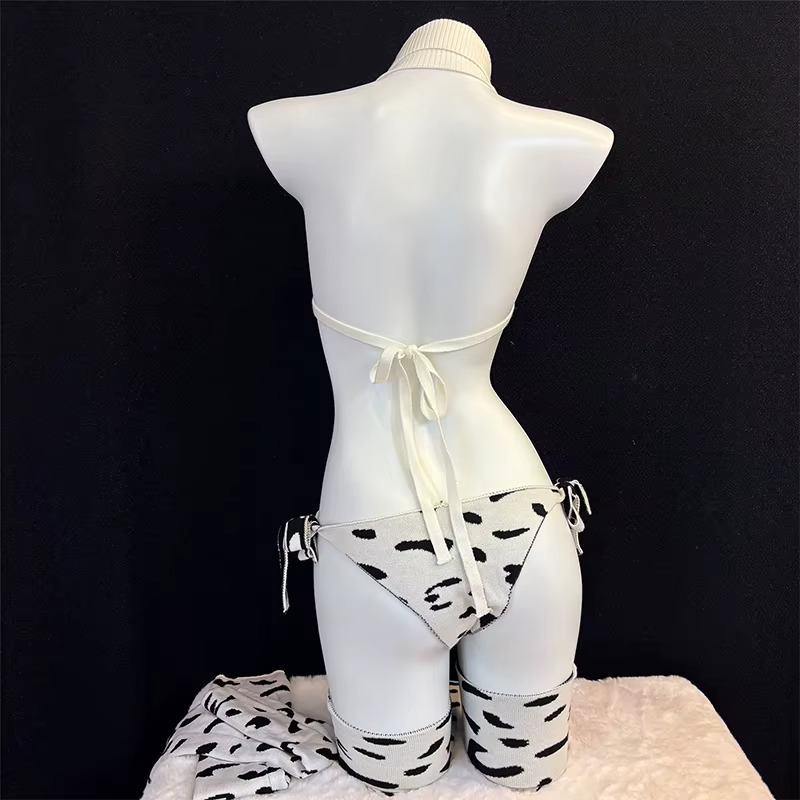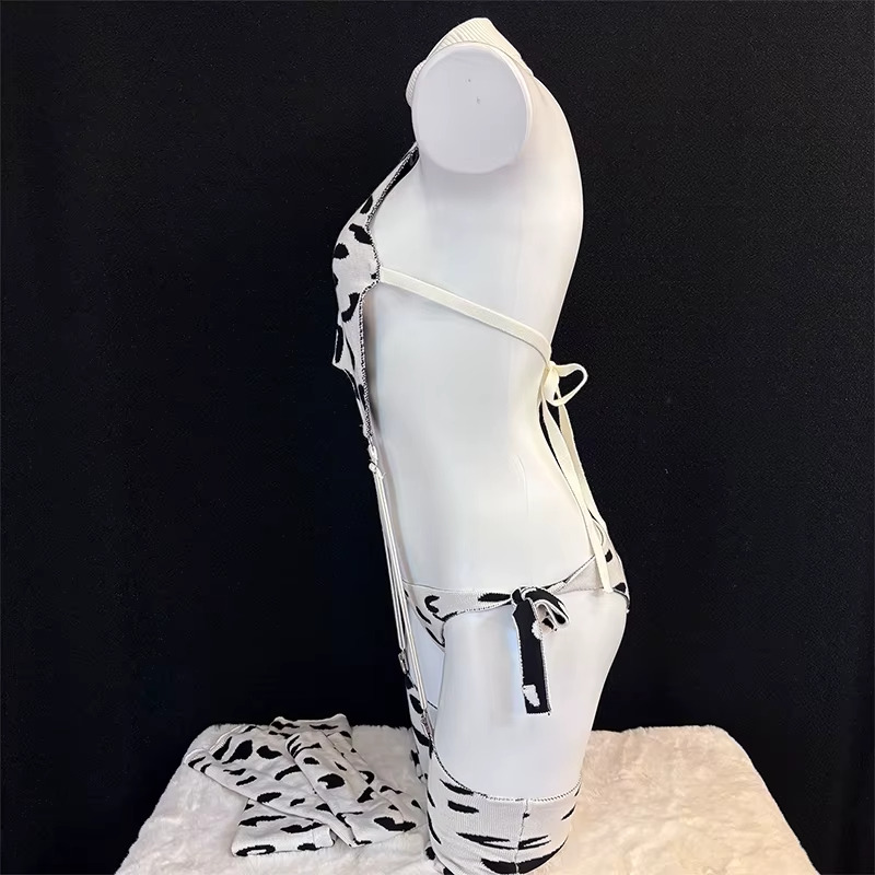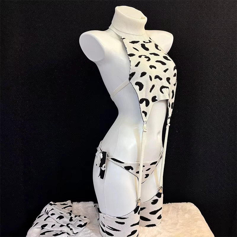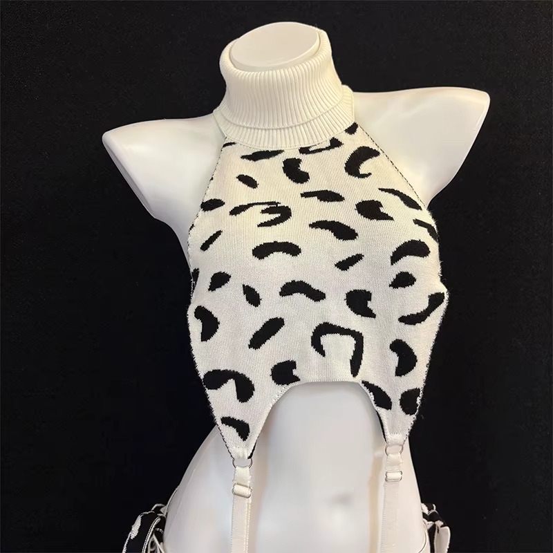 Turn heads and break hearts in this Japanese Virgin Destroyer Cow Print Sweater — a daring fusion of strappy minimalism and thigh-high drama. With detachable sleeves, ribbed textures, and a figure-wrapping silhouette, it comes in sultry black or smoky grey to match your mood. Bold, unapologetic, and irresistibly unforgettable.